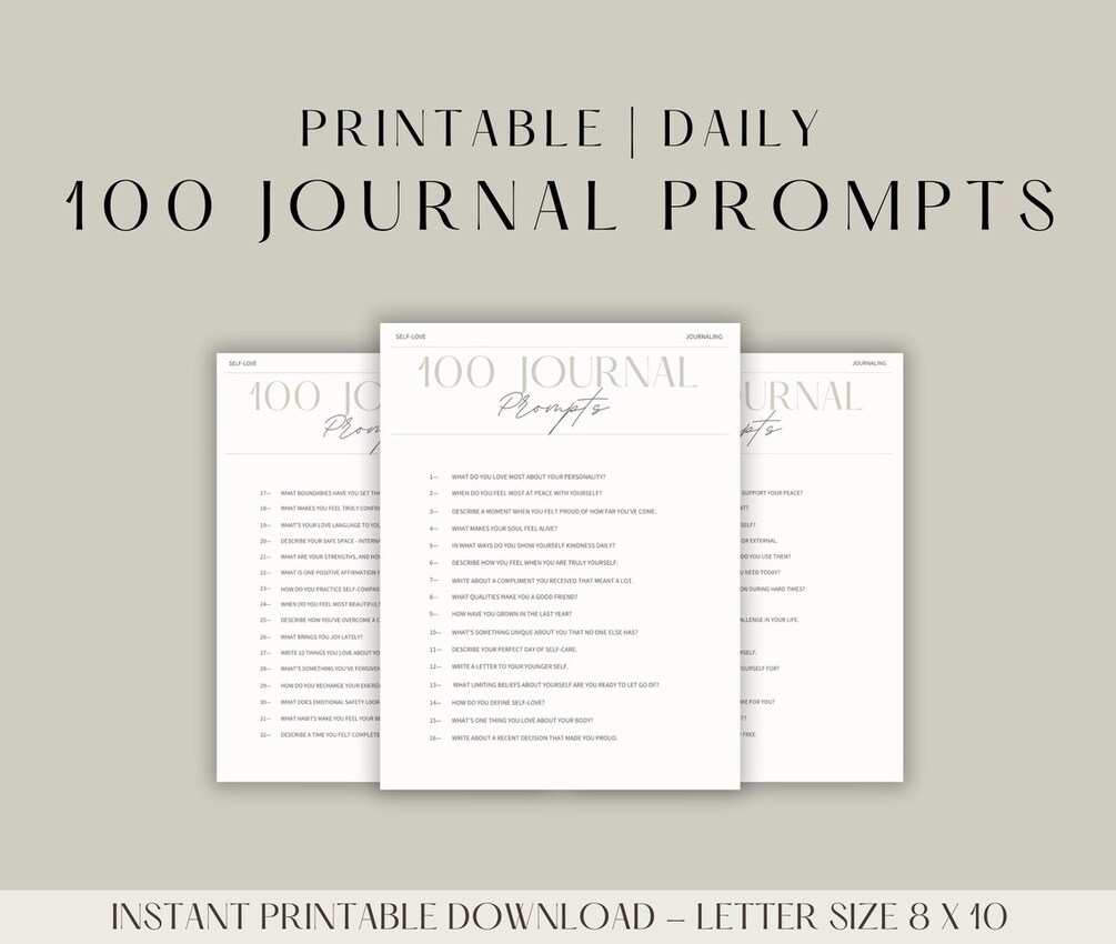 100 Journal Prompts for Self Love | Printable Journal Prompts for Self-Love Self-Care Healing Growth Journey | Digital Download