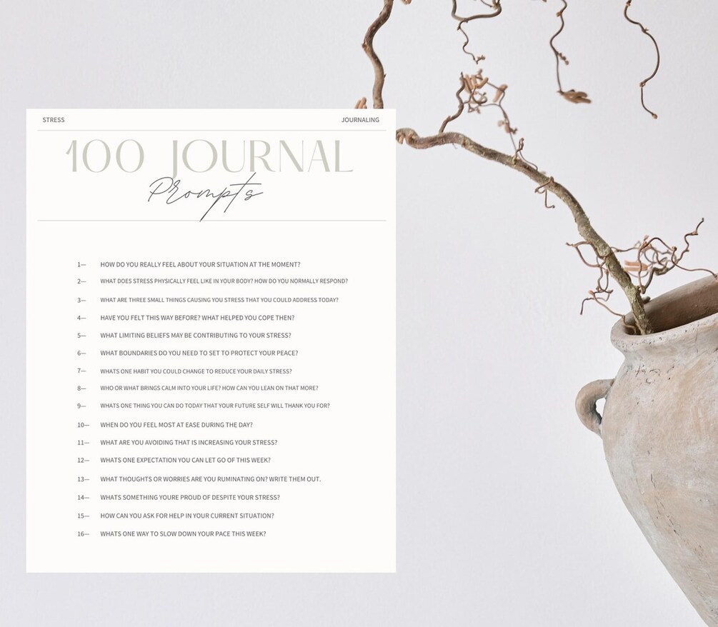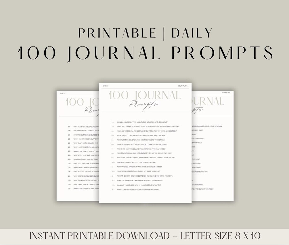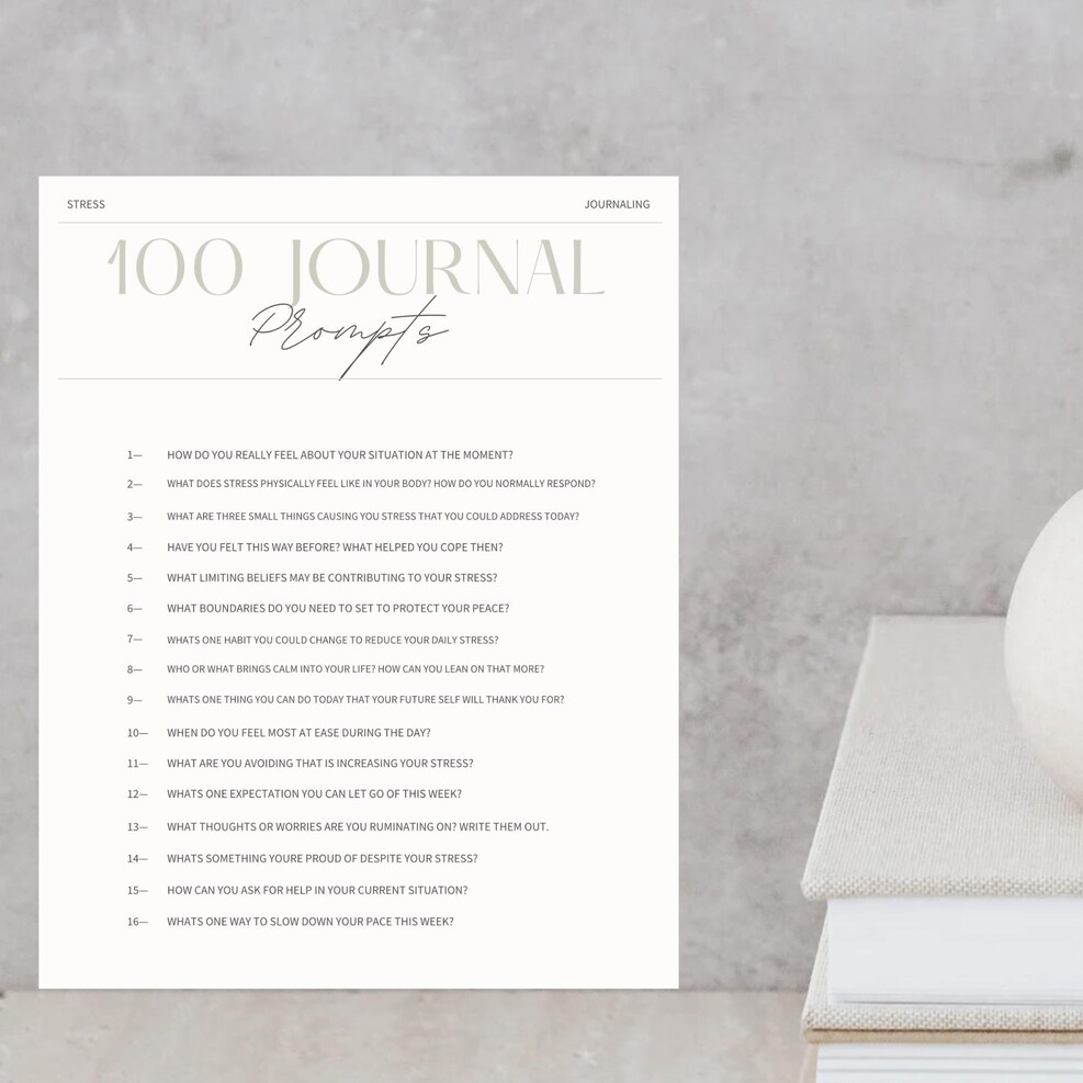 100 Journal Prompts for Stress | Printable Journal Prompts to De-Stress Manifest Self-Love Self-Care Healing Growth | Digital Download